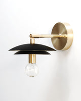 • Double reflector shades. There are two shade options. All matte-black, or matte black on top with brass on the bottom. (Picture shows the second option.)