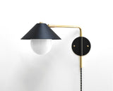 Hardwire cord configuration is shown in the second picture. If you plan to hardwire your lamp, choose the correct length + DIY hardwire kit. The kit includes a custom 4" wide brass spacer that that mounts behind the black face-plate, and mounting screws. The hardwire kit adds 1" to the overall length of the lamp. A custom 5" cast brass spacer is available on request.